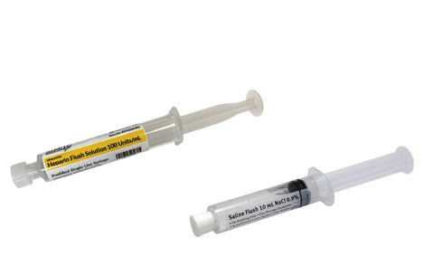 - Prefilled Heparin lock syringes (if ordered)